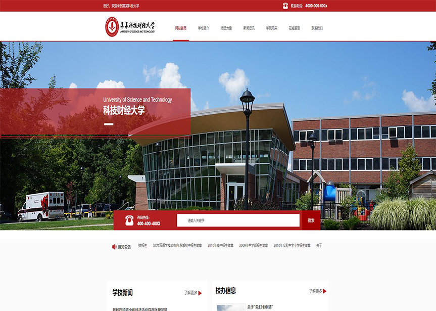 模板名稱:(帶手機版數據同步)自適應學校類紅色網站模板