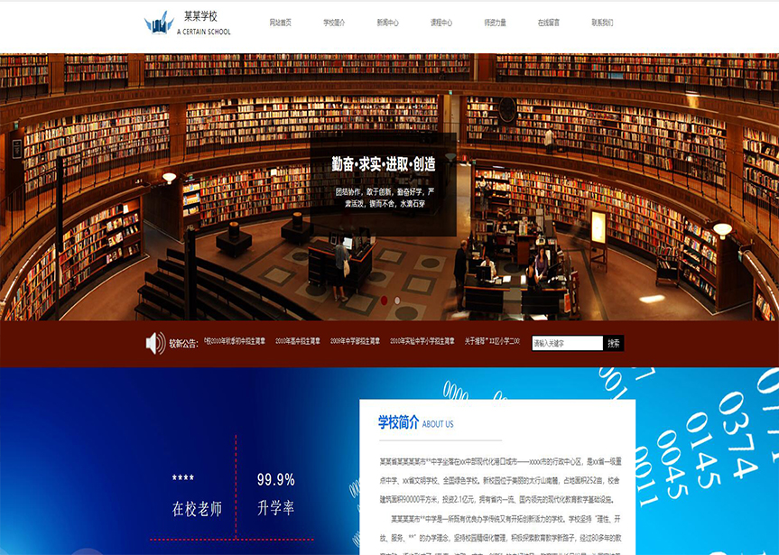 模板名稱:(帶手機版數據同步)自適應學校類藍色網站模板