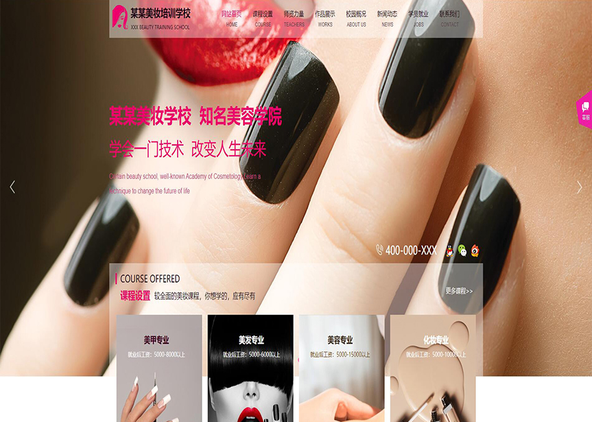 模板名稱:(帶手機版數據同步)自適應美妝培訓學校網站模板