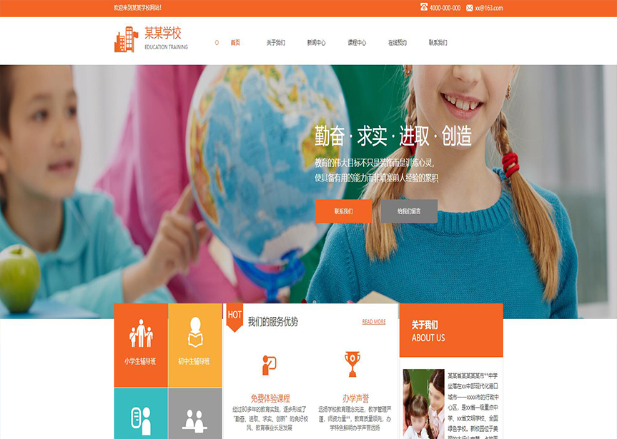 模板名稱:(帶手機版數據同步)自適應學校類橙色通用網站模板