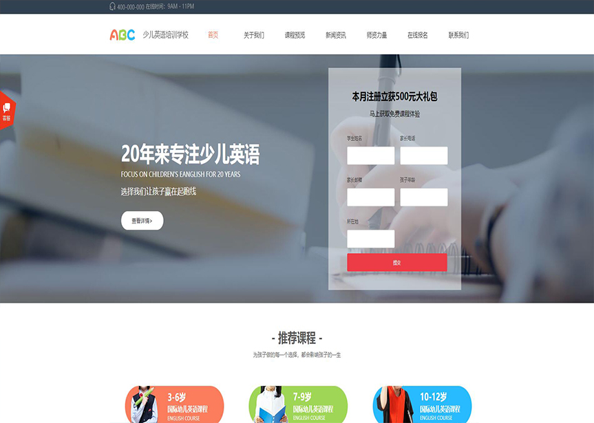 模板名稱:(帶手機(jī)版數(shù)據(jù)同步)自適應(yīng)少兒英語培訓(xùn)學(xué)校網(wǎng)站模板