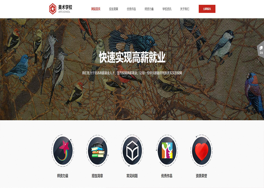 模板名稱:(帶手機版數據同步)自適應美術學校網站模板