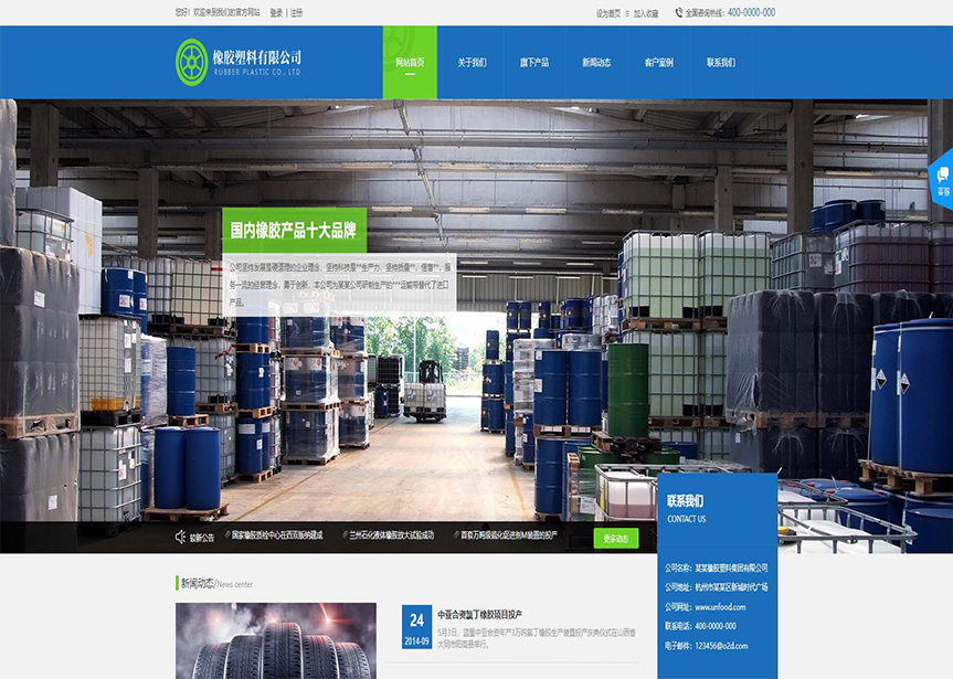 模板名稱:(帶手機版數據同步)自適應橡膠塑料綠色網站模板