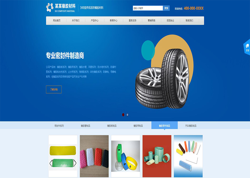 模板名稱:(帶手機版數據同步)自適應橡膠材料藍色網站模板