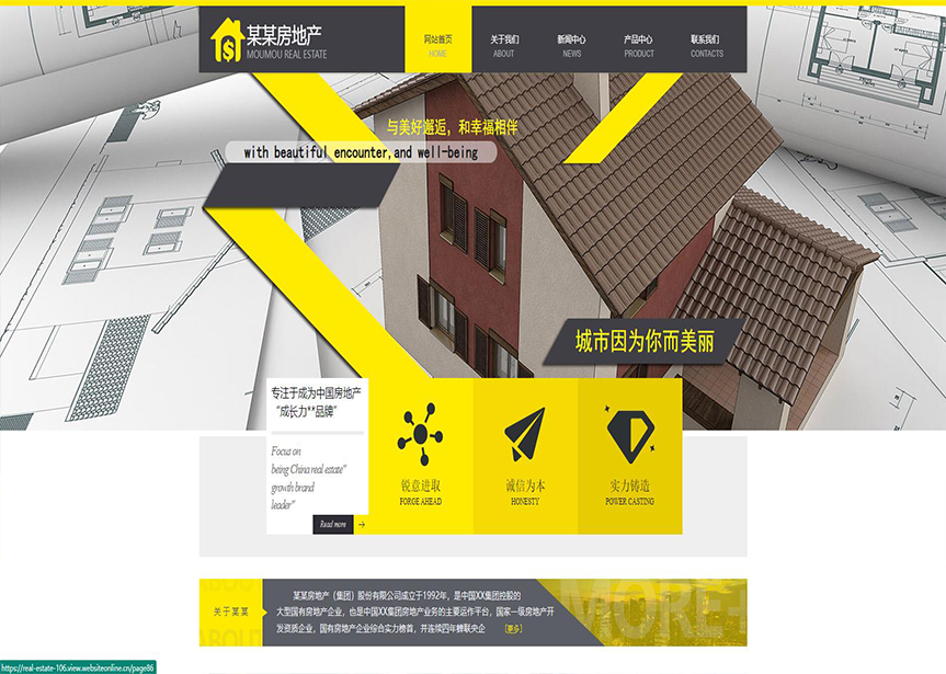 模板名稱:(帶手機版數據同步)自適應房地產黃色網站模板