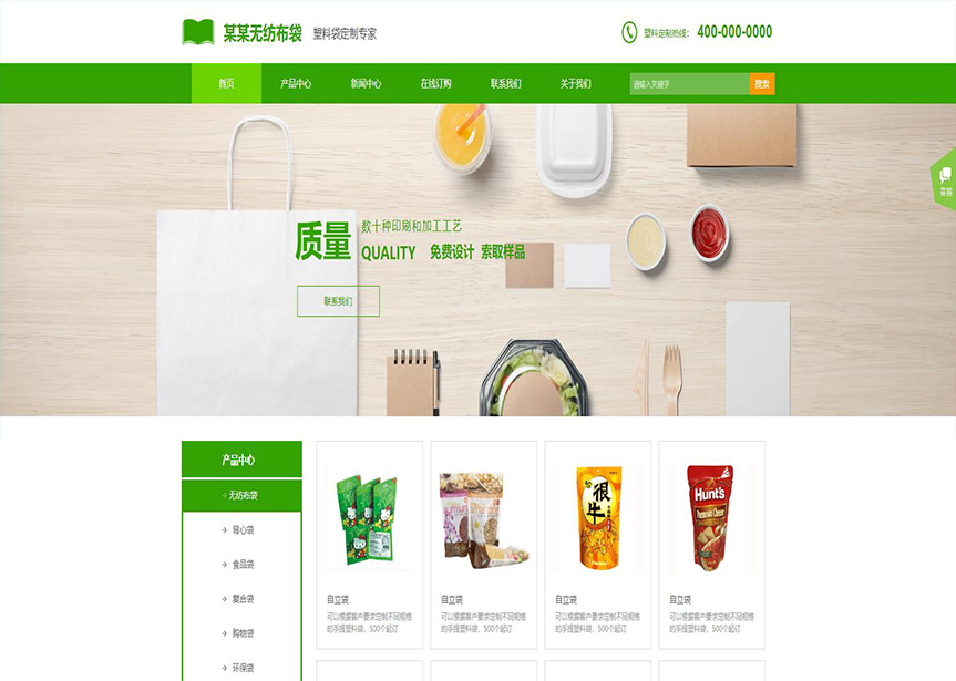 模板名稱:(帶手機(jī)版數(shù)據(jù)同步)自適應(yīng)印刷包裝類無(wú)紡布袋網(wǎng)站模板