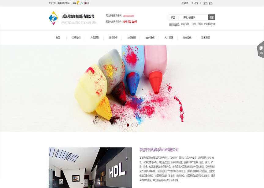 模板名稱:(帶手機版數據同步)自適應印刷包裝類網絡印刷網站模板