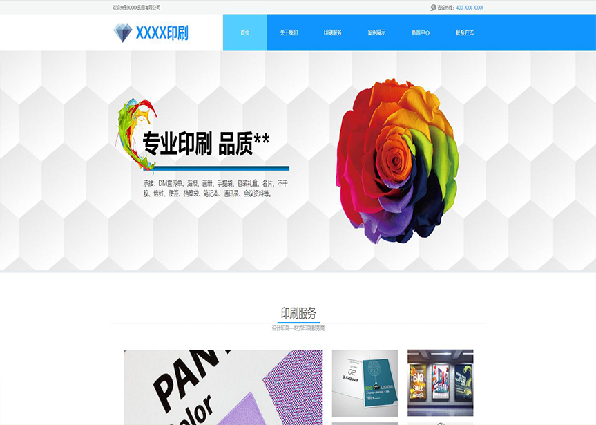 模板名稱:(帶手機版數(shù)據(jù)同步)自適應印刷包裝類藍色通用網(wǎng)站模板