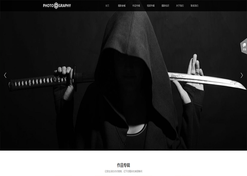 模板名稱:(帶手機版數據同步)自適應攝影沖印類黑色攝影網站模板