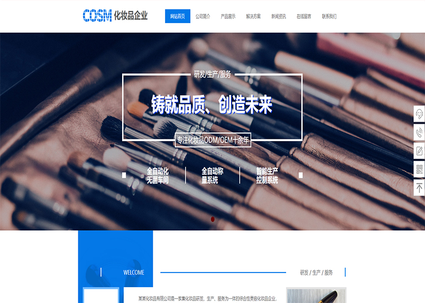 模板名称:(带手机版数据同步)自适应美容护肤类蓝色通用网站模板