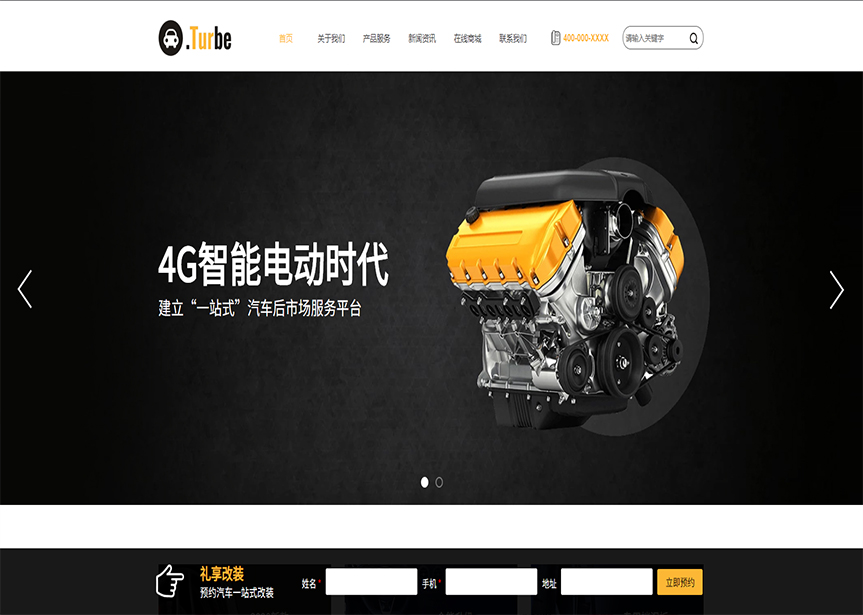 模板名稱:(帶手機版數據同步)自適應汽車服務類黃色通用網站模板