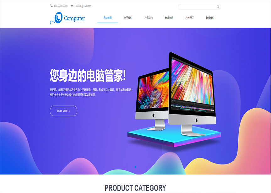 模板名稱:(帶手機版數據同步)自適應電腦類藍色通用網站模板