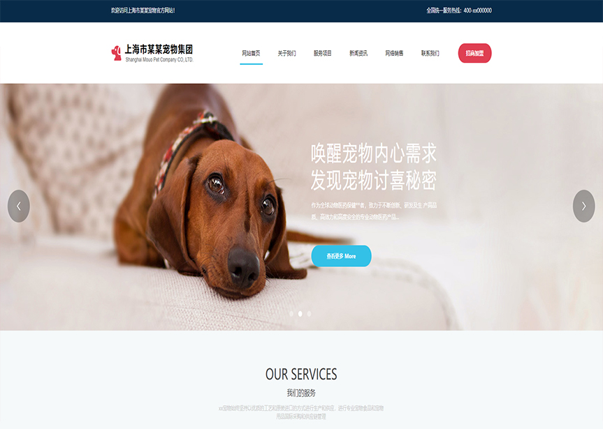 模板名稱:(帶手機版數(shù)據(jù)同步)自適應寵物類藍色通用網(wǎng)站模板