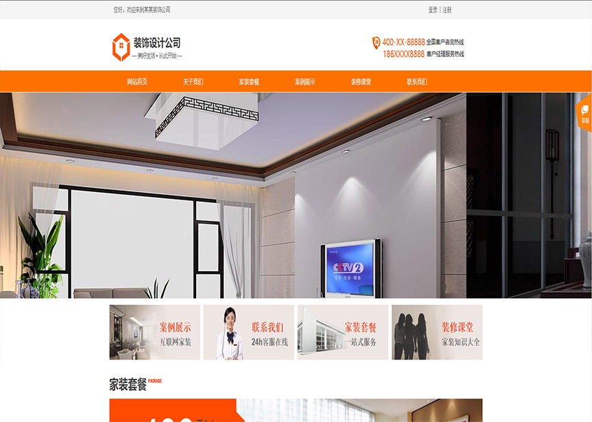 模板名稱:(帶手機版數(shù)據(jù)同步)自適應設計裝飾類橙色通用網站模板