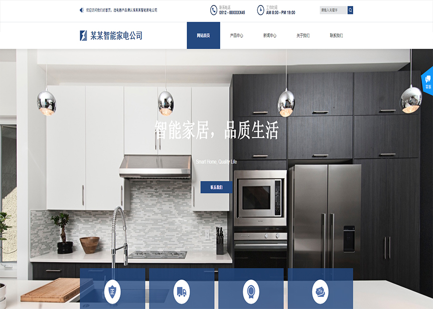 模板名稱:(帶手機版數據同步)自適應家電類藍色通用網站模板