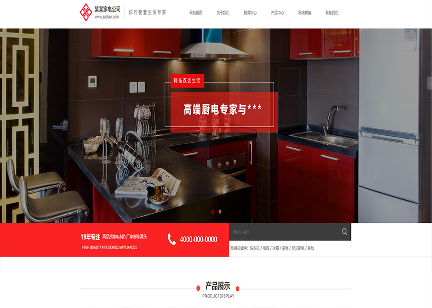 模板名稱:(帶手機版數據同步)自適應家電類紅色通用網站模板