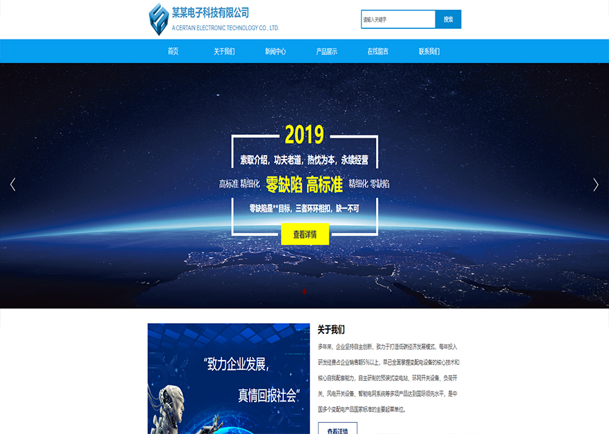 模板名稱:(帶手機版數據同步)自適應電子電氣類藍色通用網站模板