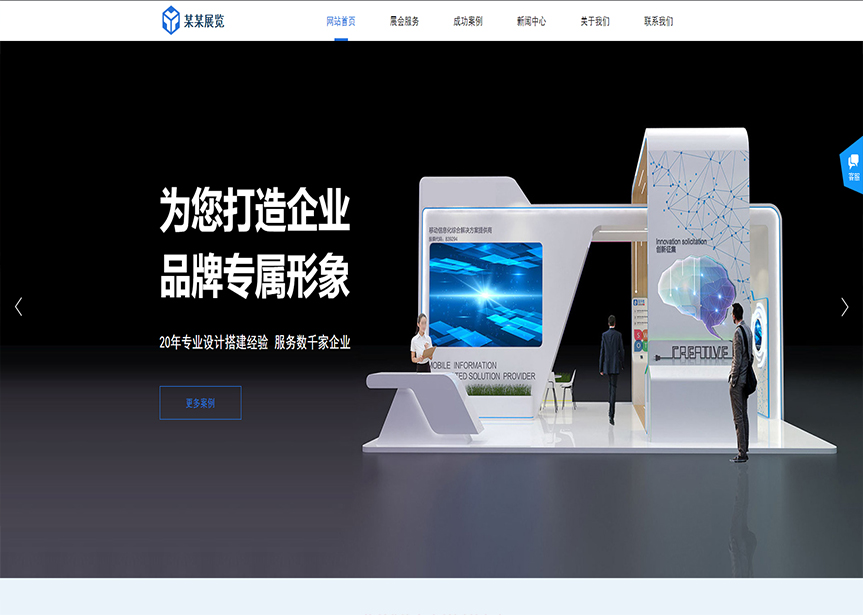 模板名称:(带手机版数据同步)自适应展览展会类蓝色通用网站模板