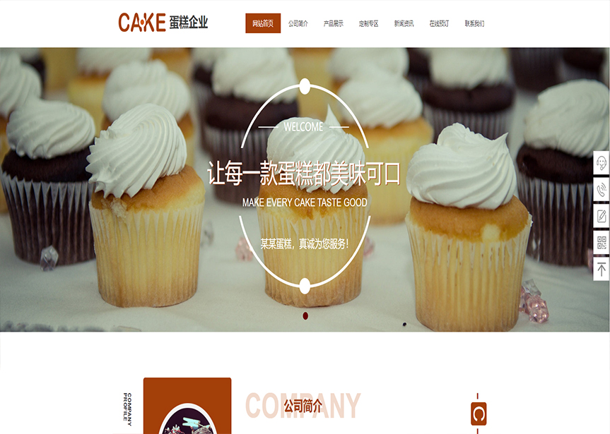 模板名称:(带手机版数据同步)自适应食品类蛋糕通用网站模板