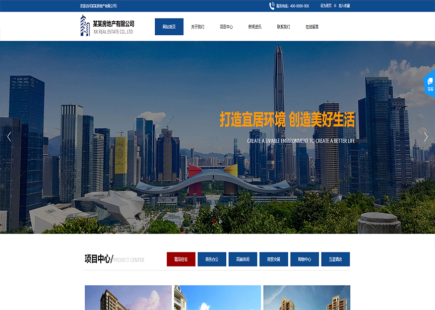 模板名稱:(帶手機版數據同步)自適應房地產類藍色通用網站模板
