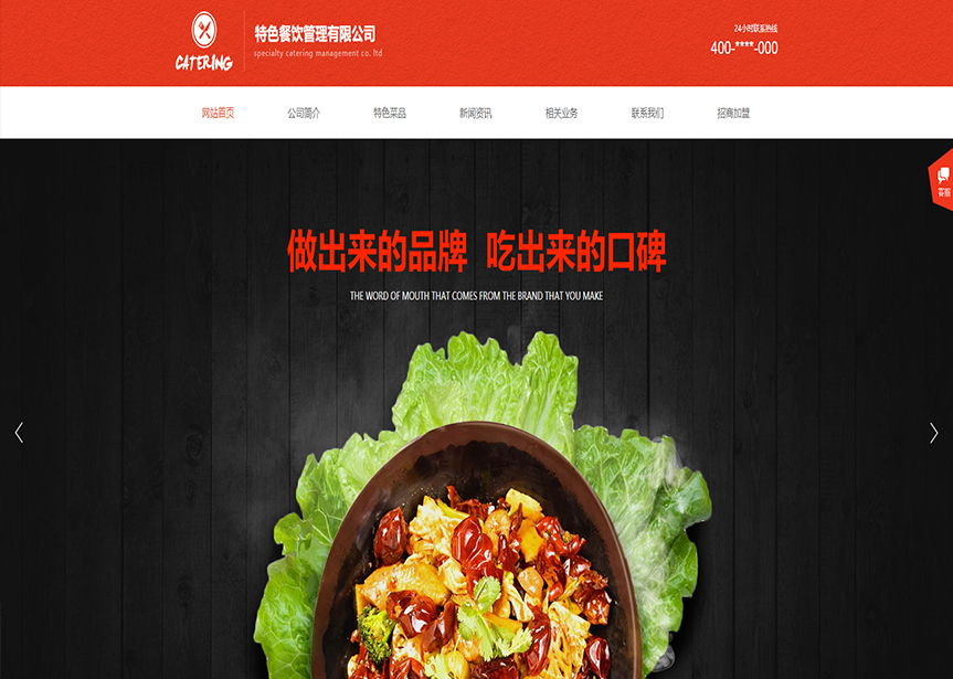 模板名称:(带手机版数据同步)自适应餐饮类红色通用网站模板