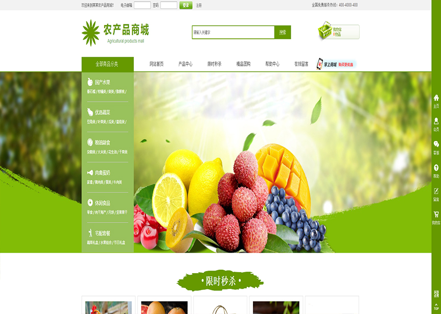 模板名稱:(帶手機版數據同步)自適應商城類農產品通用網站模板