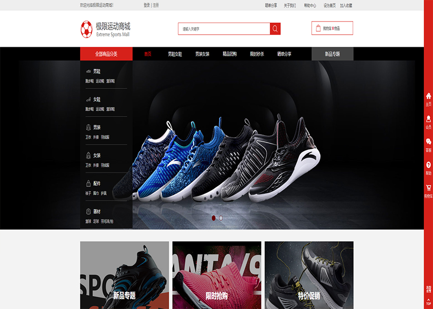 模板名稱:(帶手機版數據同步)自適應商城類運動商城通用網站模板