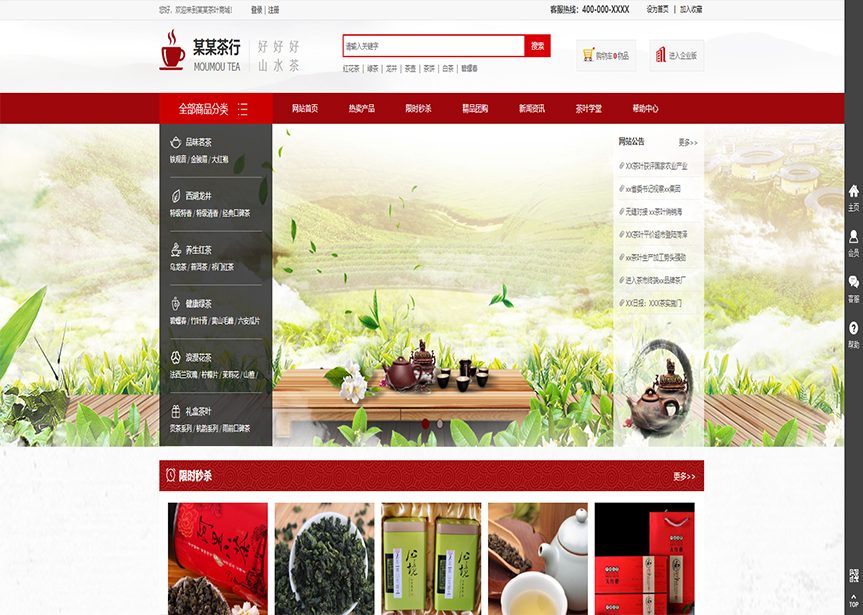 模板名稱:(帶手機版數據同步)自適應商城類茶行商城通用網站模板