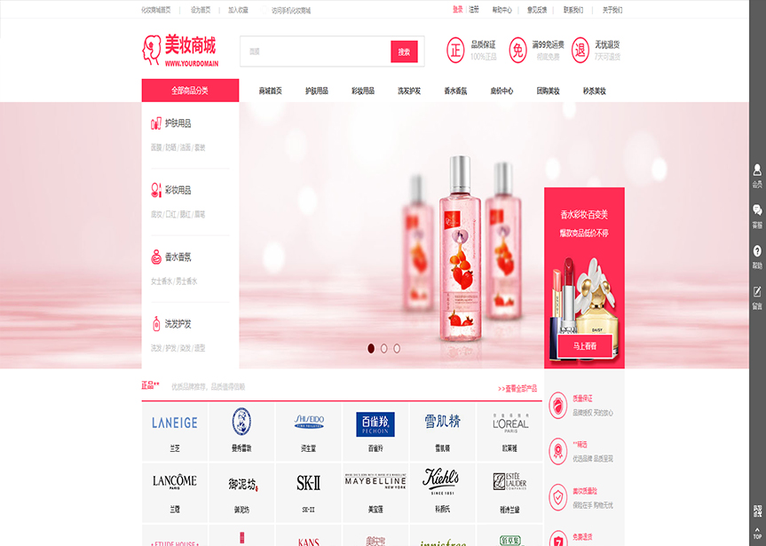 模板名稱:(帶手機版數據同步)自適應商城類美妝商城通用網站模板