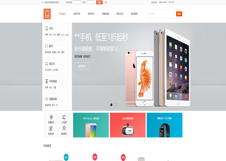 模板名稱:(帶手機版數據同步)自適應商城類數碼商城通用網站模板