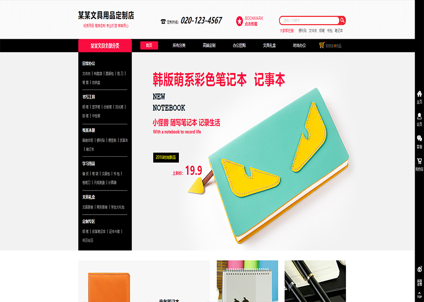 网站模板名称:(带手机版数据同步)自适应商城类文具商城通用网站模板