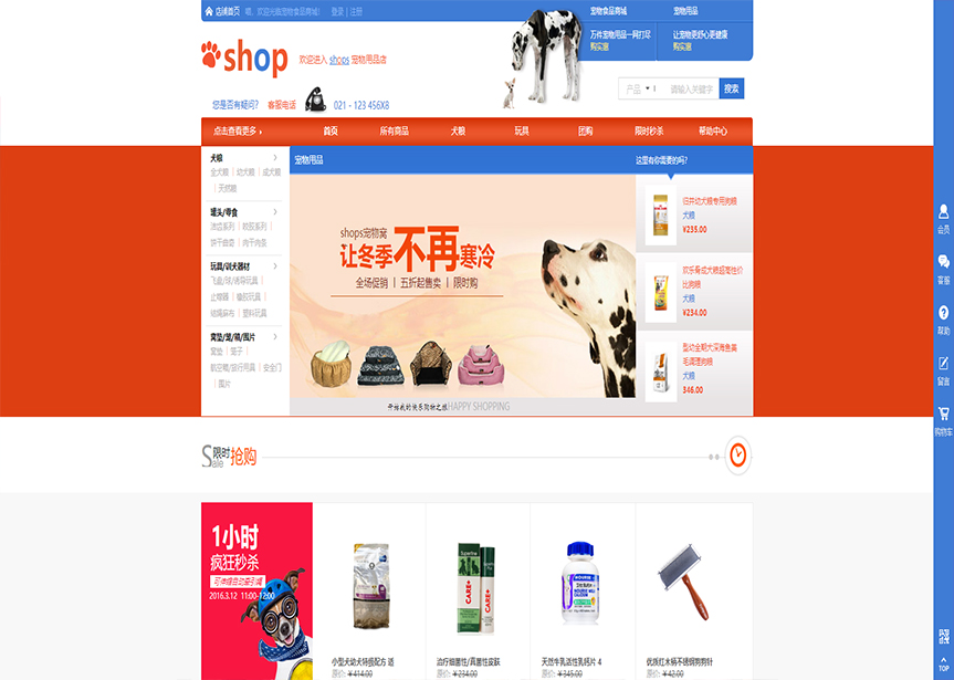 網(wǎng)站模板名稱:(帶手機(jī)版數(shù)據(jù)同步)自適應(yīng)商城類寵物商城通用網(wǎng)站模板