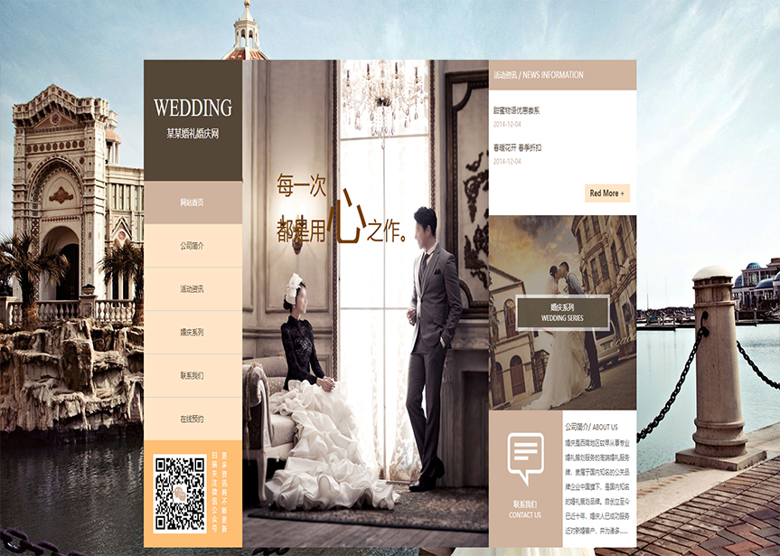 网站模板名称:(带手机版数据同步)自适应婚礼婚庆类金色网站模板