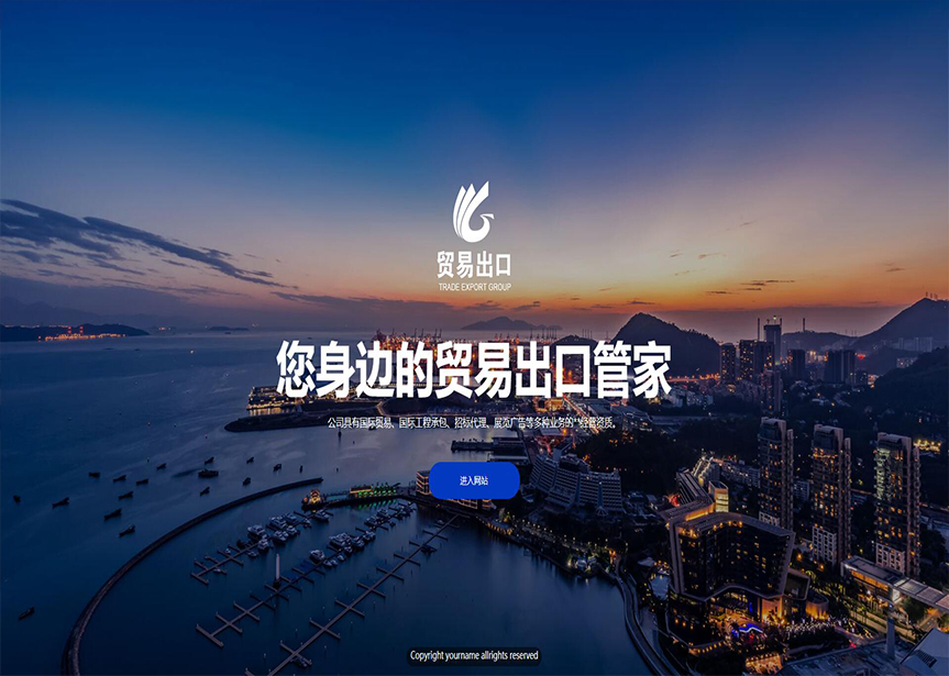 网站模板名称:(带手机版数据同步)自适应贸易出口类蓝色网站模板