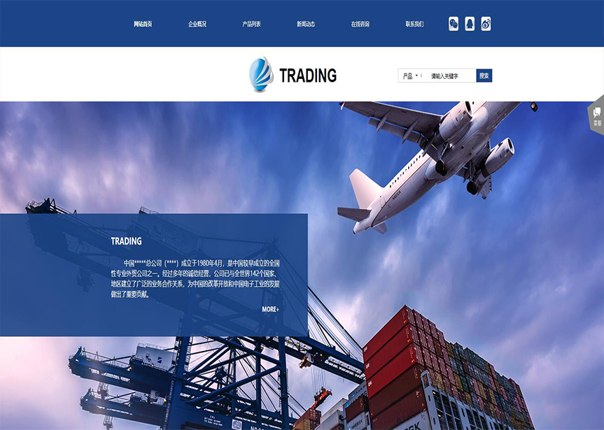 網(wǎng)站模板名稱(chēng):(帶手機(jī)版數(shù)據(jù)同步)自適應(yīng)貿(mào)易出口類(lèi)藍(lán)色網(wǎng)站模板