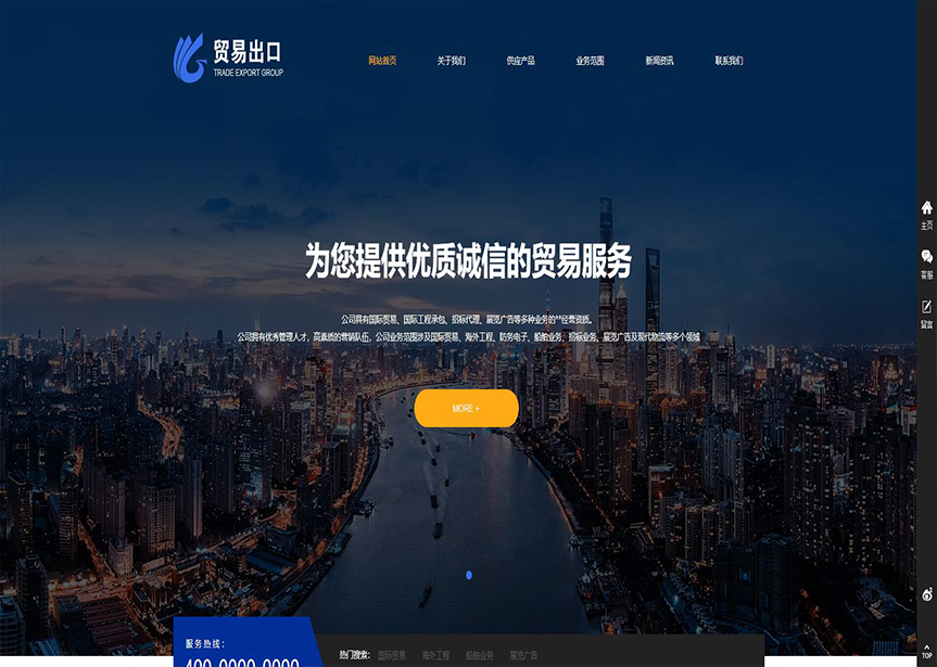 网站模板名称:(带手机版数据同步)自适应贸易出口类通用网站模板