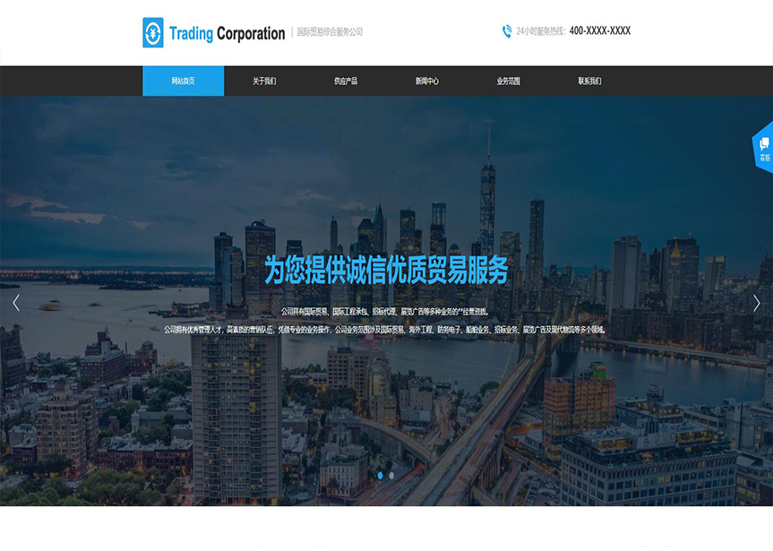 網站模板名稱:(帶手機版數據同步)自適應貿易出口類藍色網站模板