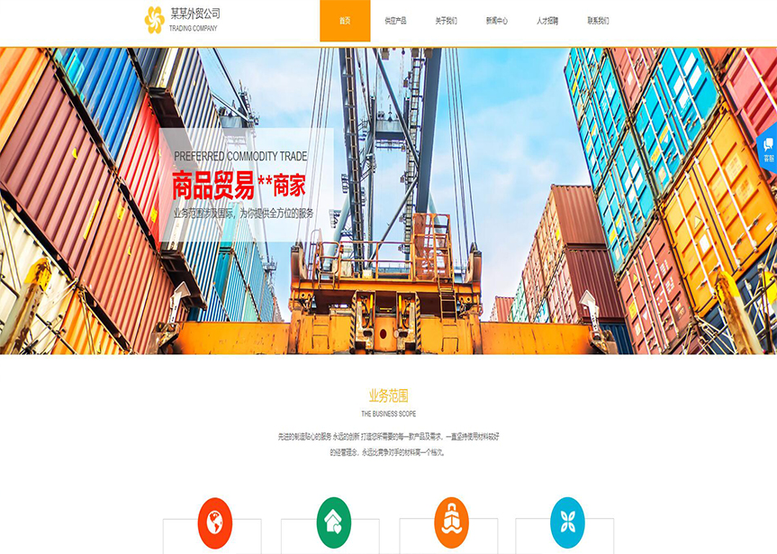 網站模板名稱:(帶手機版數據同步)自適應貿易出口類黃色網站模板