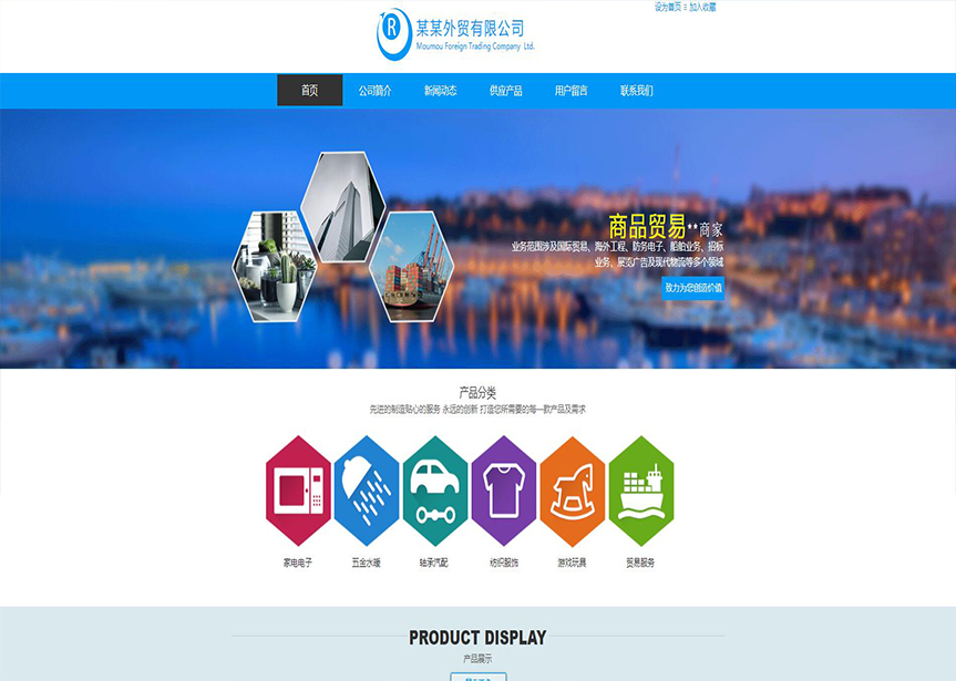 網站模板名稱:(帶手機版數據同步)自適應貿易出口類藍色網站模板