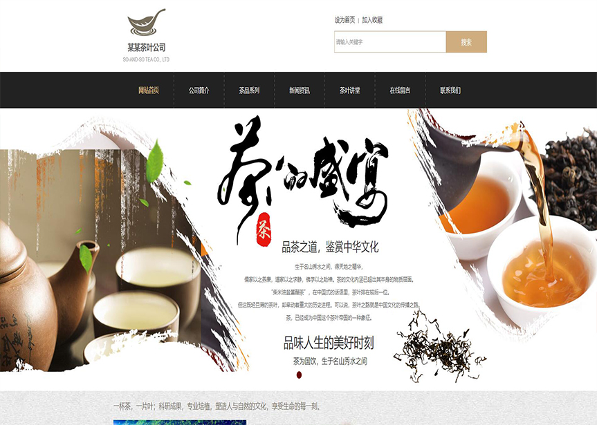 模板名稱:(帶手機版數據同步)自適應茶葉類金色網站模板