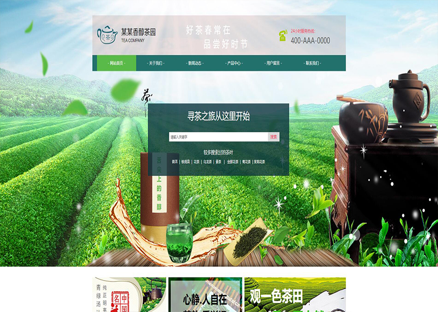 模板名称:(带手机版数据同步)自适应茶叶类绿色网站模板