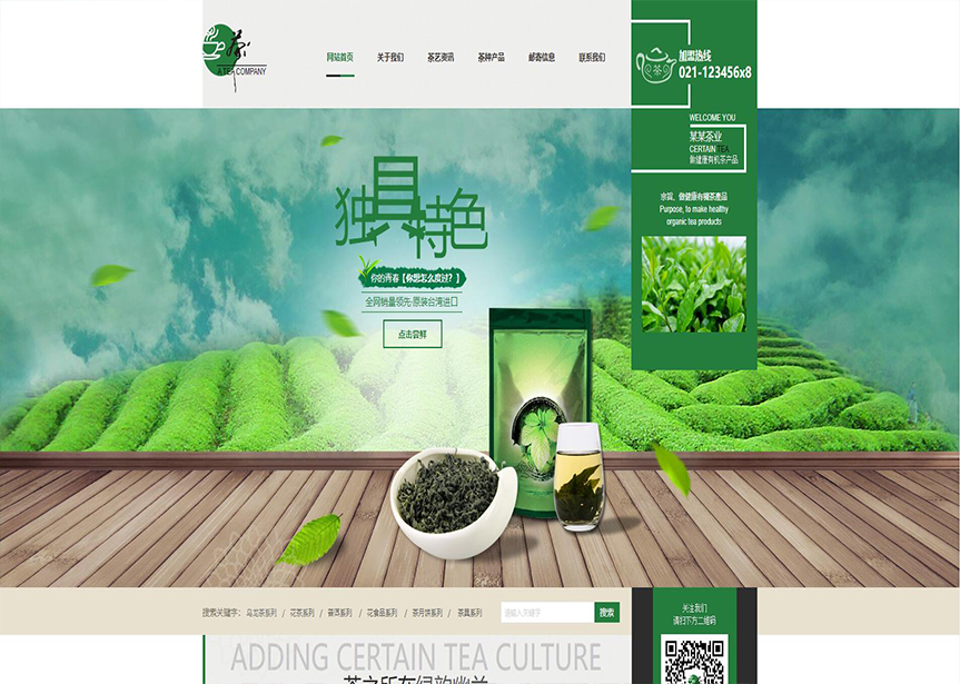 模板名稱:(帶手機版數據同步)自適應茶葉類綠色網站模板