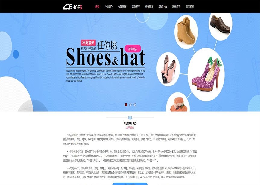 模板名稱:(帶手機版數據同步)自適應鞋帽類粉紅色網站模板