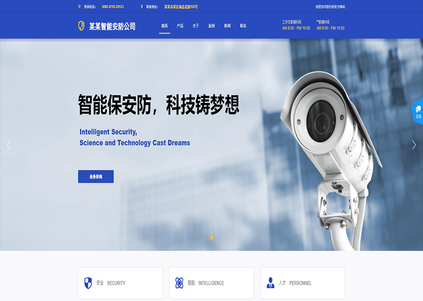 模板名稱:(帶手機(jī)版數(shù)據(jù)同步)自適應(yīng)安防監(jiān)控器材類(lèi)藍(lán)色網(wǎng)站模板