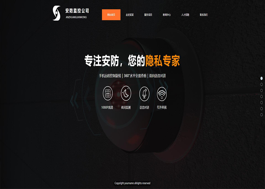 模板名稱:(帶手機版數據同步)自適應安防監控器材類橙色網站模板