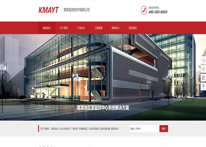 模板名称:(带手机版数据同步)自适应安防监控器材类红色网站模板