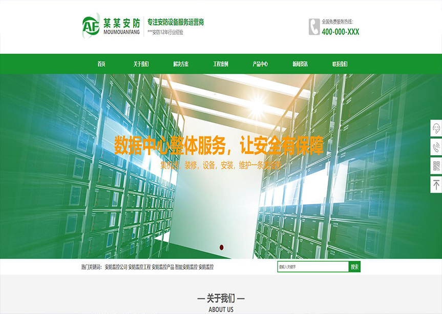 模板名稱:(帶手機版數據同步)自適應安防監控器材類綠色網站模板