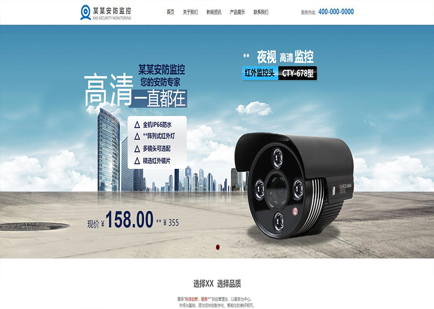 模板名稱:(帶手機版數據同步)自適應安防監控器材類藍色網站模板