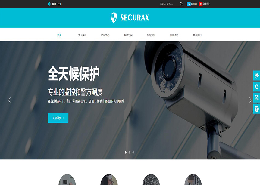模板名稱:(帶手機(jī)版數(shù)據(jù)同步)自適應(yīng)安防監(jiān)控器材類藍(lán)色網(wǎng)站模板