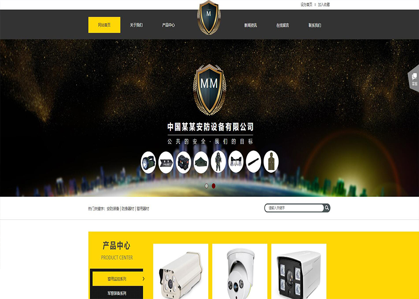 模板名稱:(帶手機版數據同步)自適應安防監控器材類黃色網站模板